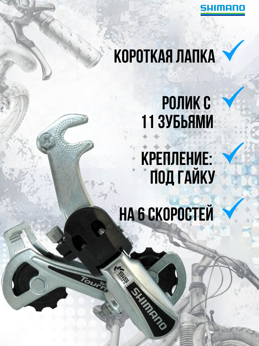 Задний переключатель скоростей для велосипеда SHIMANO Tourney RD-TY21SS 6 скоростей под болт