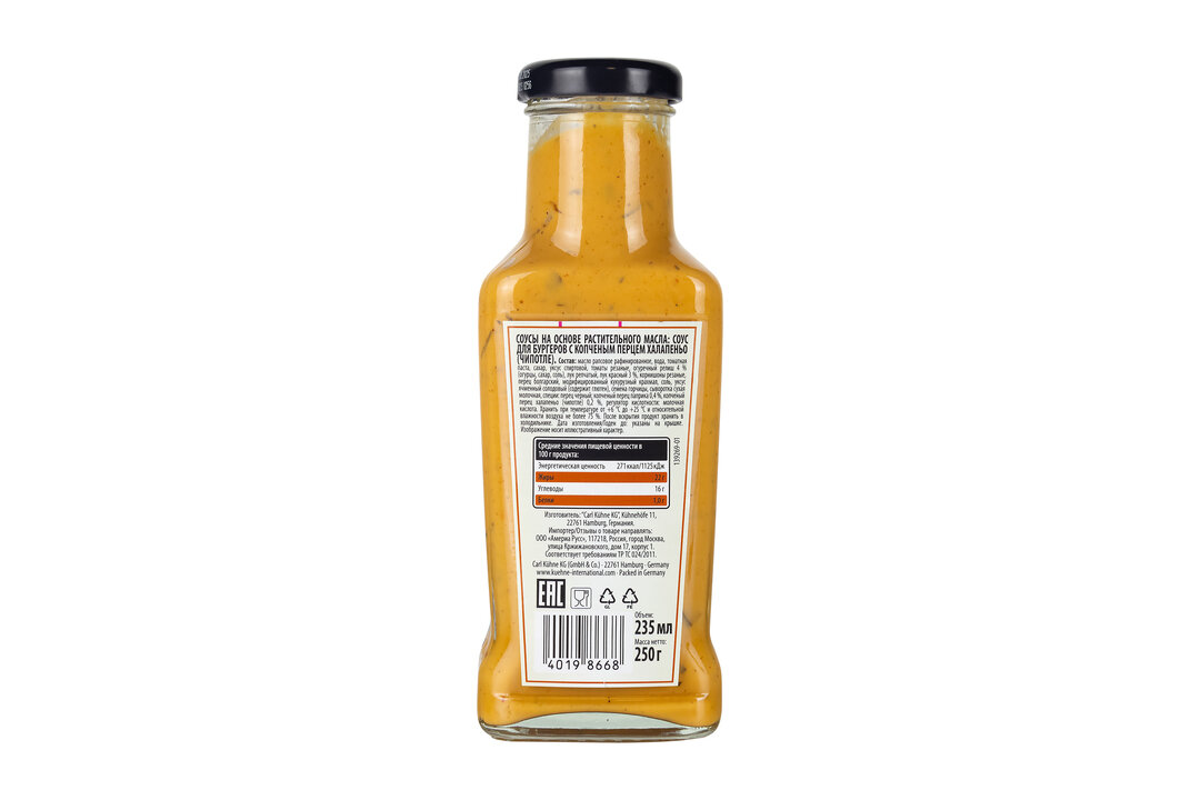 Соус KUHNE “Made for Meat” Chipotle Burger Style для бургеров с копчёным перцем Халапеньо (Чипотле), 235 мл интересное: