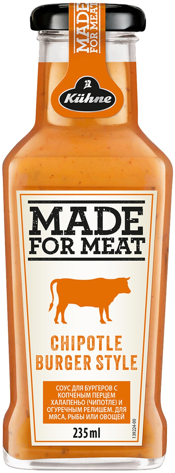 Соус Kuhne Made for Meat Chipotle Burger Style для бургеров с копчёным перцем халапеньо чипотле, 235 мл