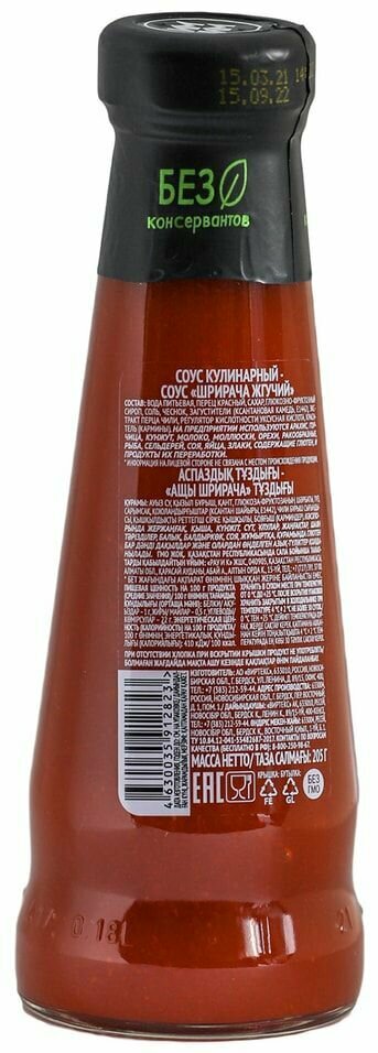 | Состав | глюкозно-фруктозный сироп, вода питьевая, пюре из манго, сахар, концентрированное грушевое пюре, перец красный чили, загустители (ксантановая камедь, Е1403, Е1442), концентрированный ананасовый сок, соль, перец красный, регулятор кислотности уксусная кислота, антиокислитель аскорбиновая кислота, краситель лютеин, ароматизатор |