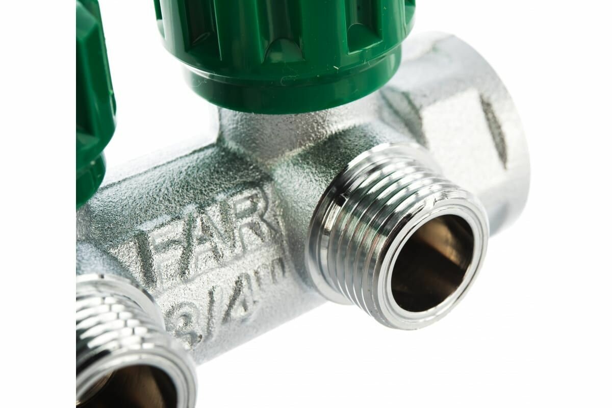 Коллектор FAR 3/4"х1/2" 4 выхода под плоскую прокладку хромированный с вентилями