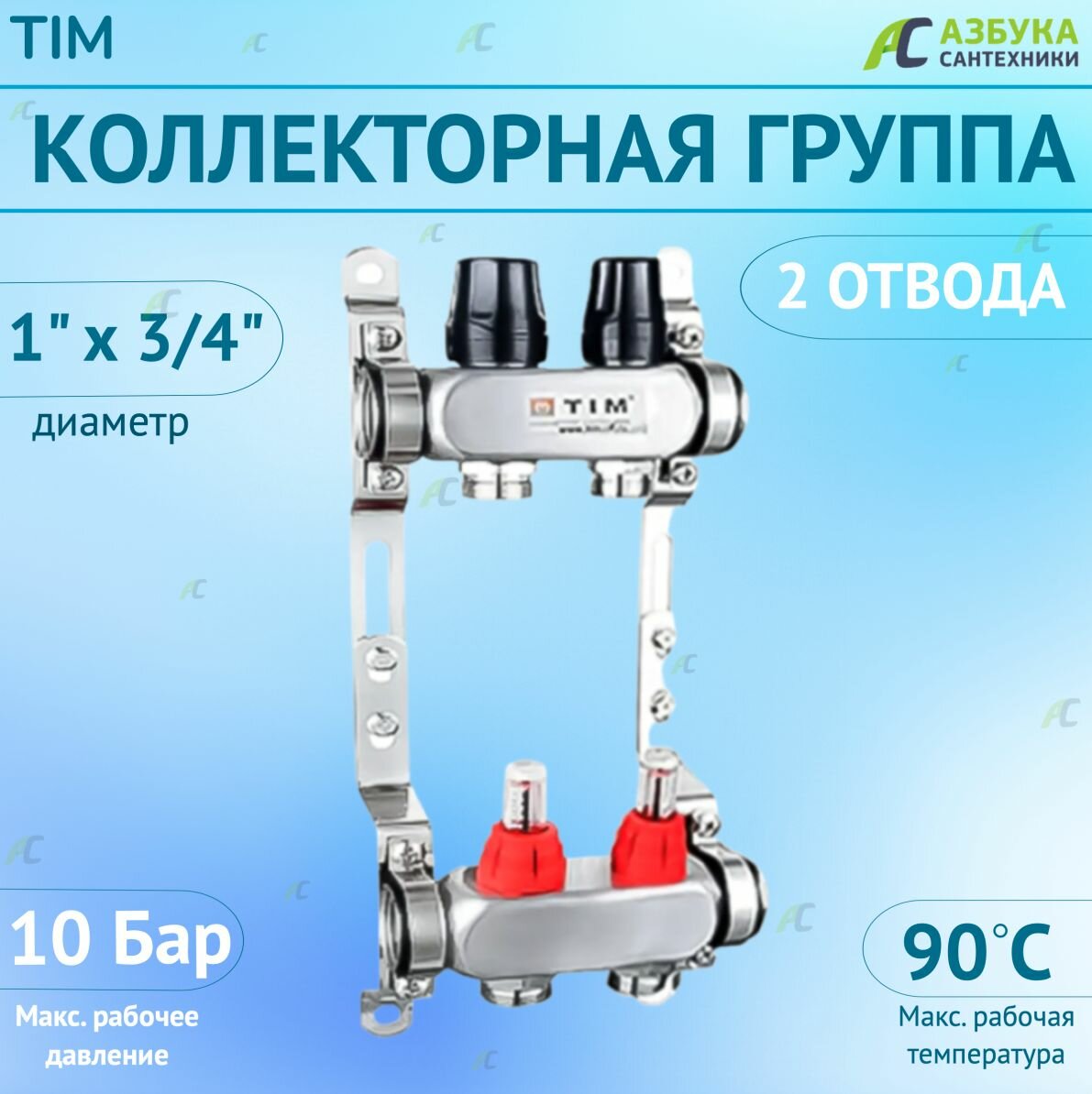 Коллекторная группа Tim KDS5002 1", 2 выхода 3/4", нерж. сталь