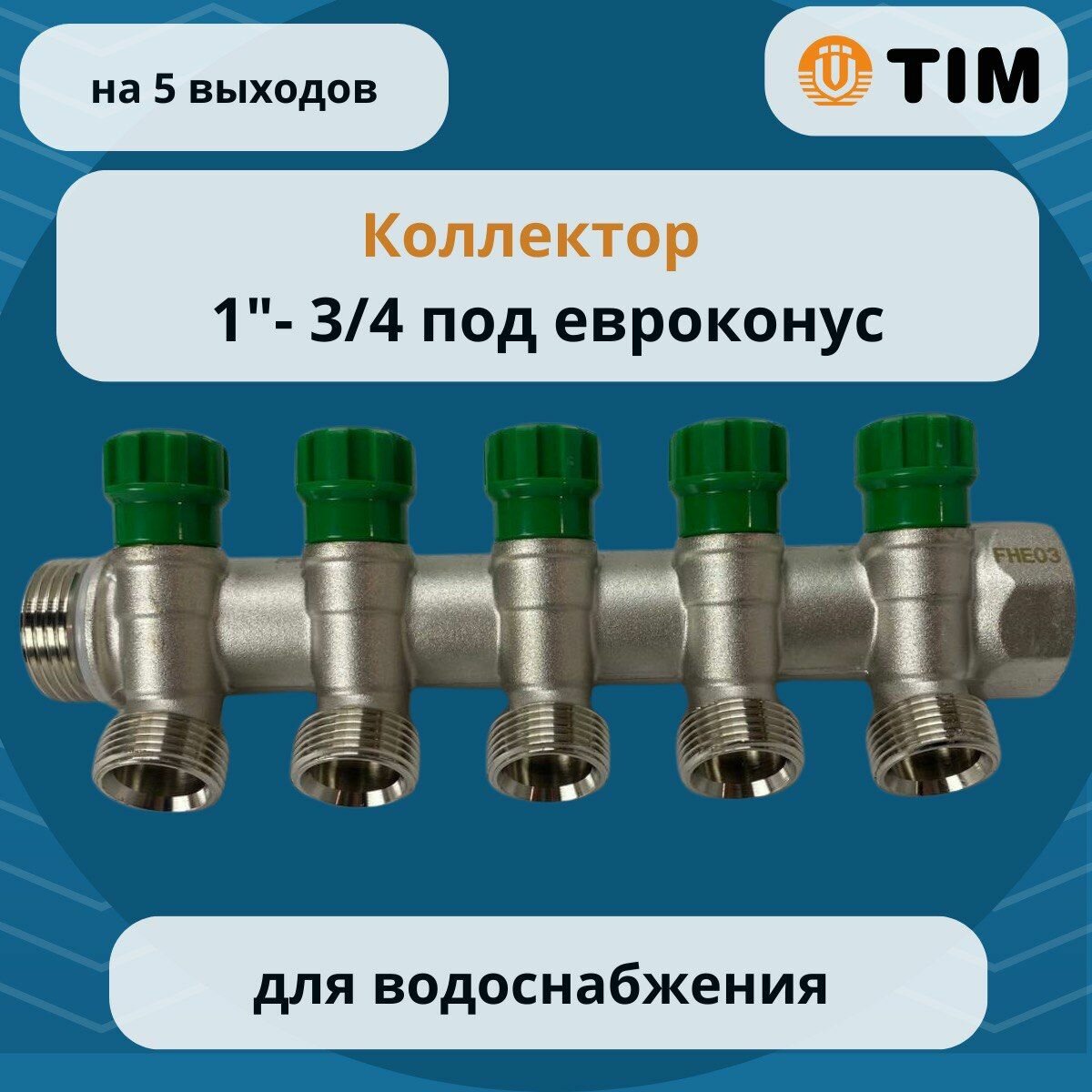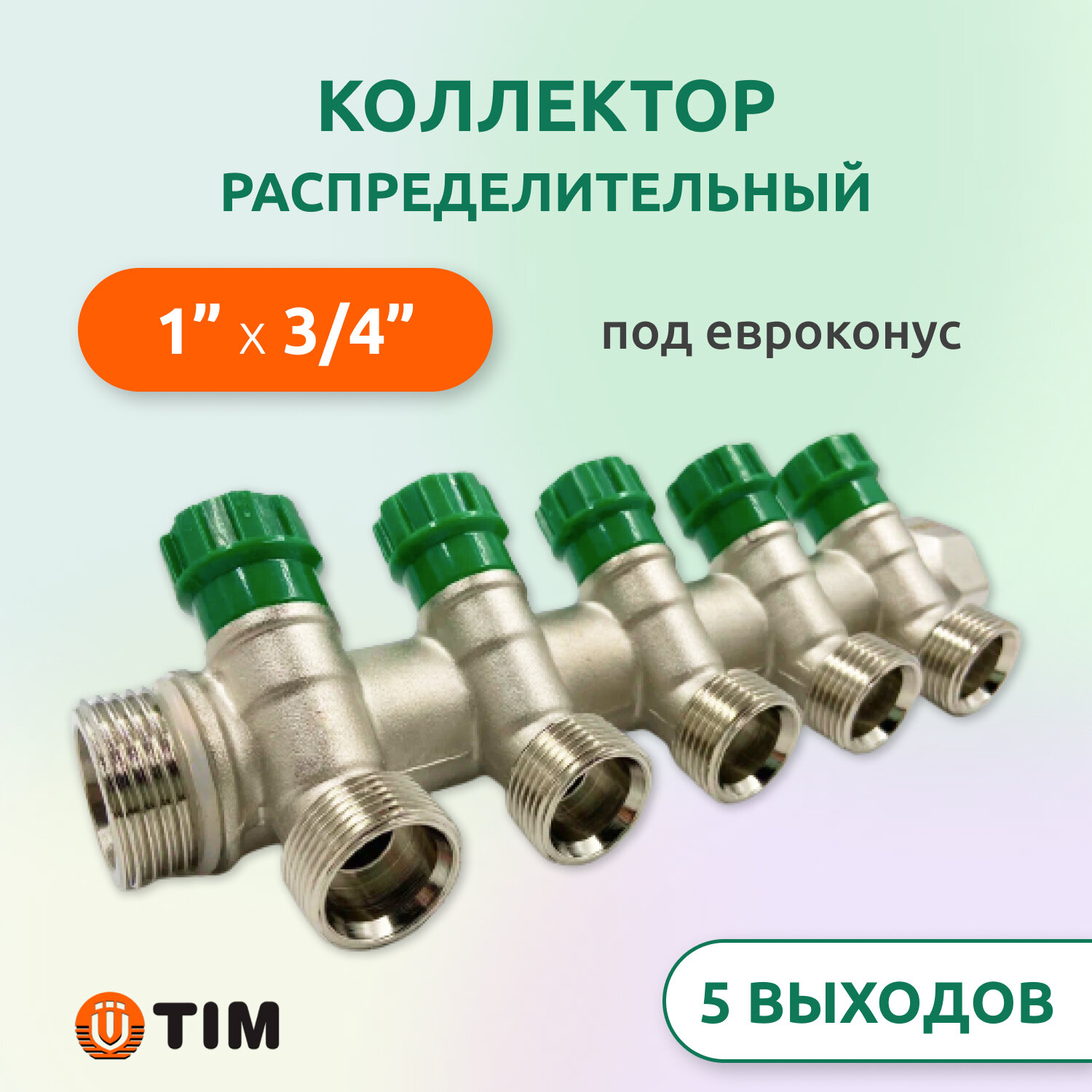 TIM Коллектор 45' с кран-буксами 1" г/ш х 3/4 под евроконус - 5 вых. арт. MR135NE-1-5