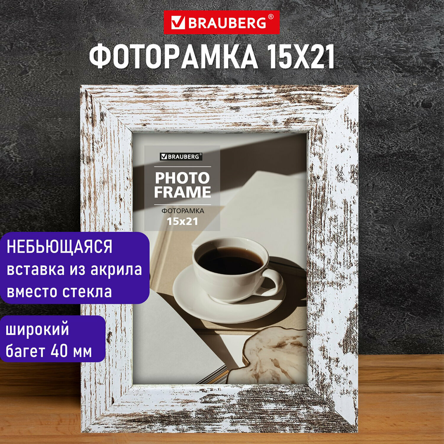 Купить Рамка 15х21 см небьющаяся, багет 40 мм, МДФ, BRAUBERG "Christopher", белая/коричневая, 391269
