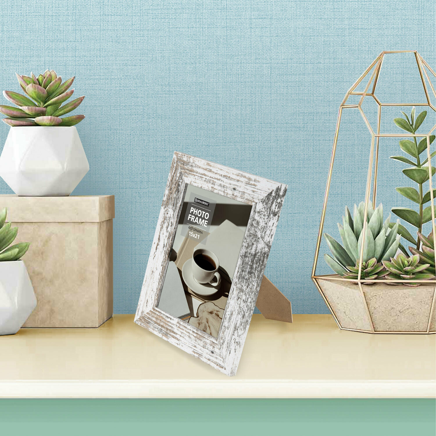 Рамка (фоторамка) для фото, фотографий, картин, грамот на стену А5 15х21 см небьющаяся, багет 40 мм, Мдф, Brauberg, белая/коричневая, 391269