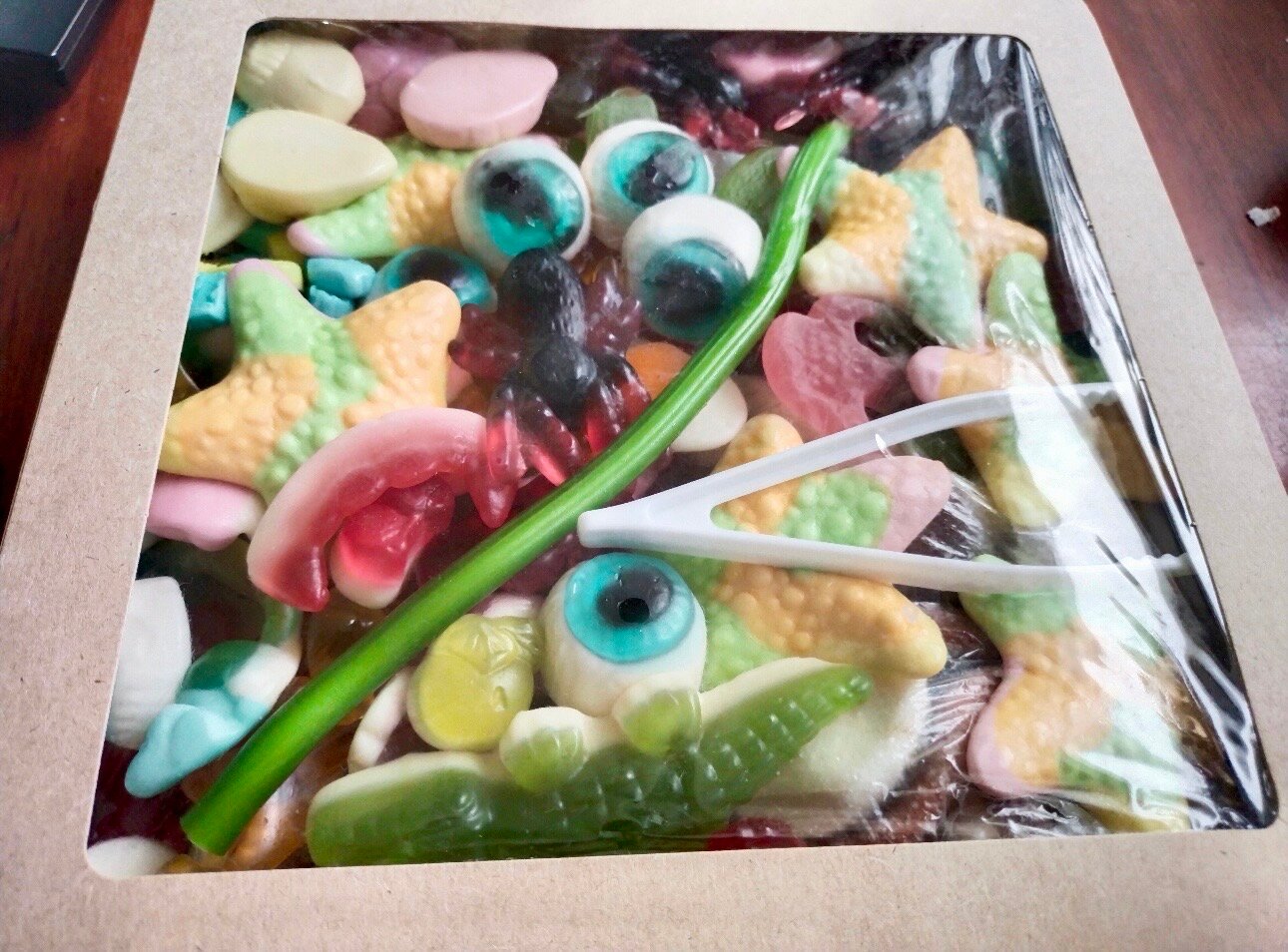 | Состав | Cахар, сироп глюкозы, вода, желирующие агенты: желатин, пектин; регулятор кислотности: лимонная кислота; глазирующие агенты: кокосовое масло; экстракт куркумы, концентрат виноградного сока, концентрат спирулины, концентрат сока моркови, натуральные ароматизаторы :клубника, яблоко, лимон, апельсин. |
