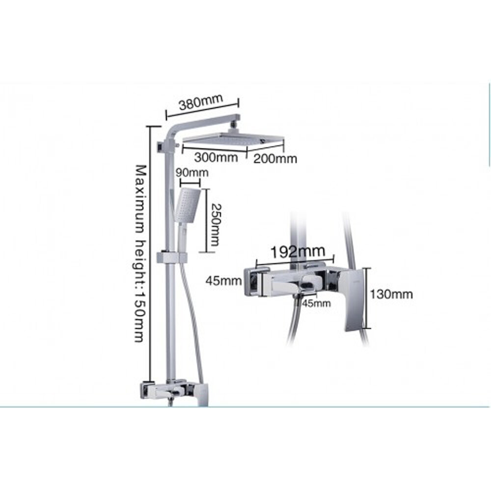 | Дополнительная информация | покрытие хром/белый; высота стойки для душа: 1500 мм; длина верхнего душа: 200 мм; ширина верхнего душа: 300 мм |