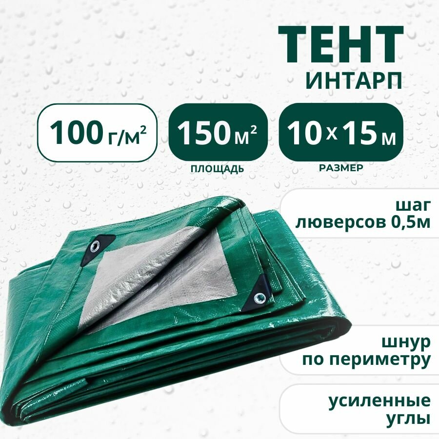 Тент тарпаулиновый Интарп 100 г/м2 10х15 с люверсами по периметру с шагом 50см