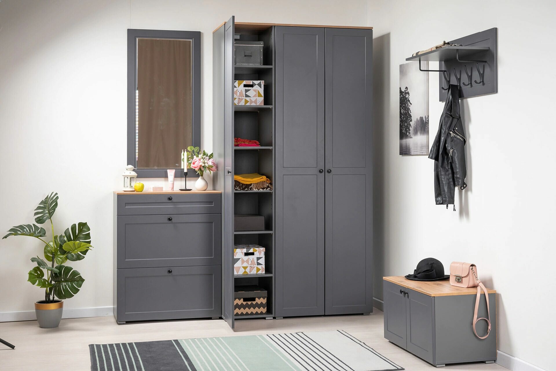 Тумба для обуви Mobi Остин 16.121, цвет серый графит/дуб вотан, ШхГхВ 80х41,6х99,3 см.