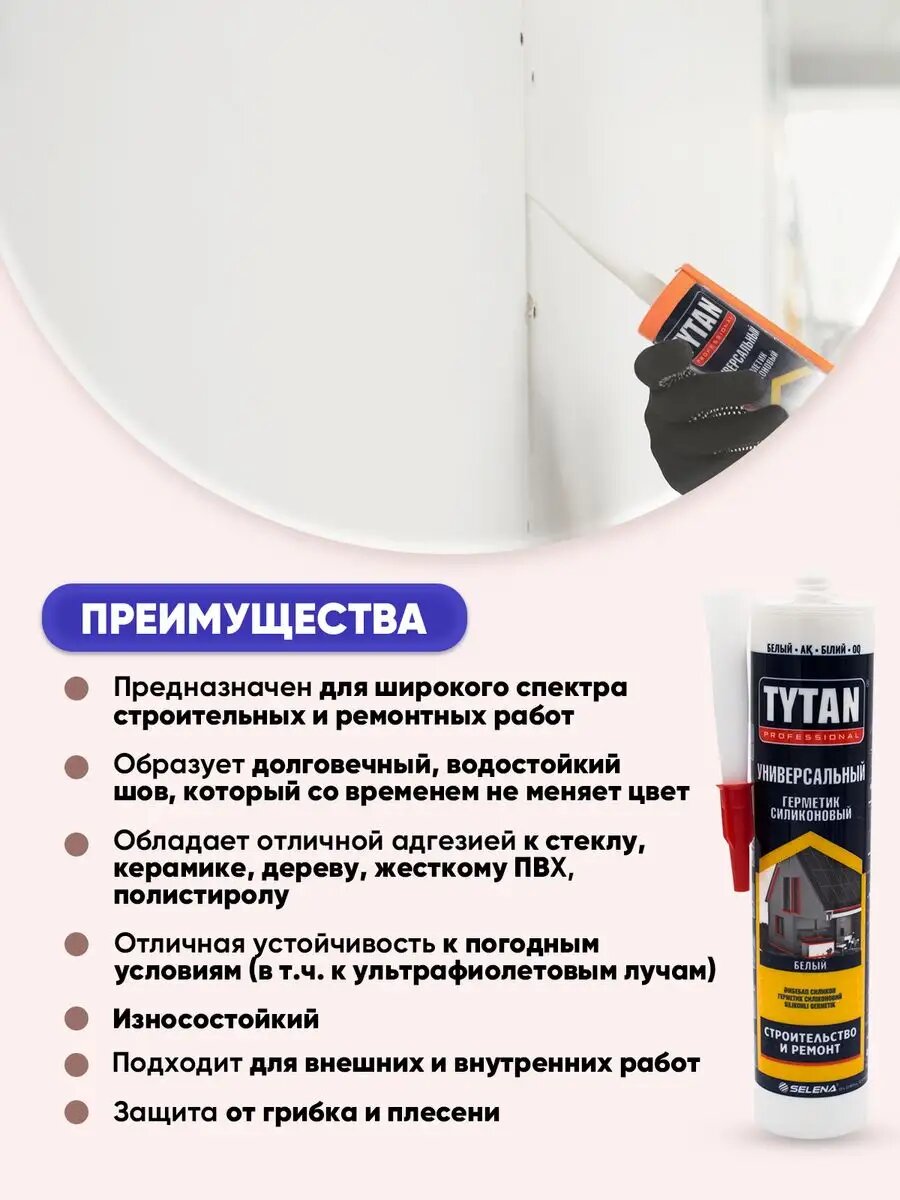 | Подробная комплектация | Герметик силиконовый Tytan универсальный прозрачный 280 мл уксусный |