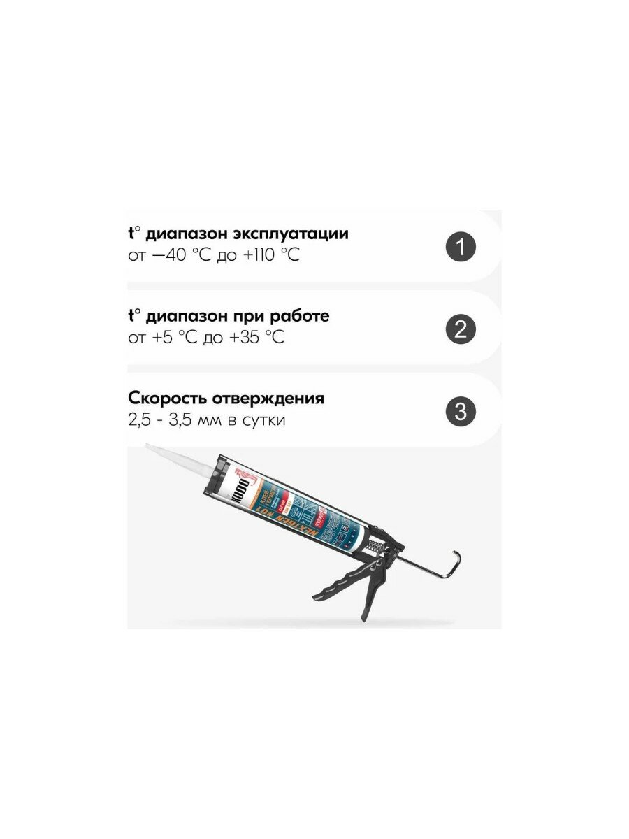 | Дополнительная информация | не использовать для швов, постоянно находящихся под водой; не применять при температуре окружающей среды ниже +5°C и в условиях высокой влажности (>70%) |