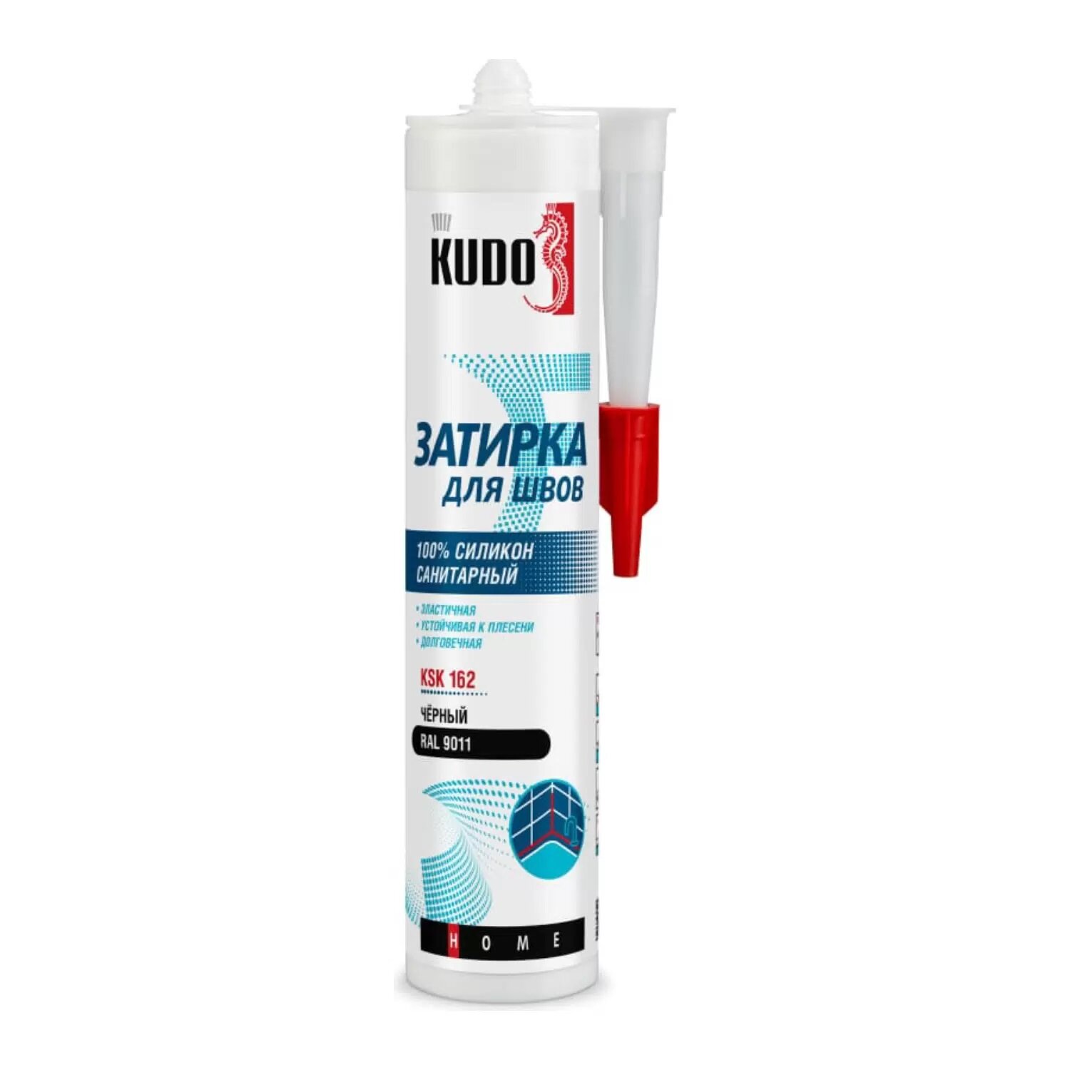 Герметик-затирка для швов KUDO "KSK 162" силиконовый санитарный, чёрный RAL 9011, 280 мл