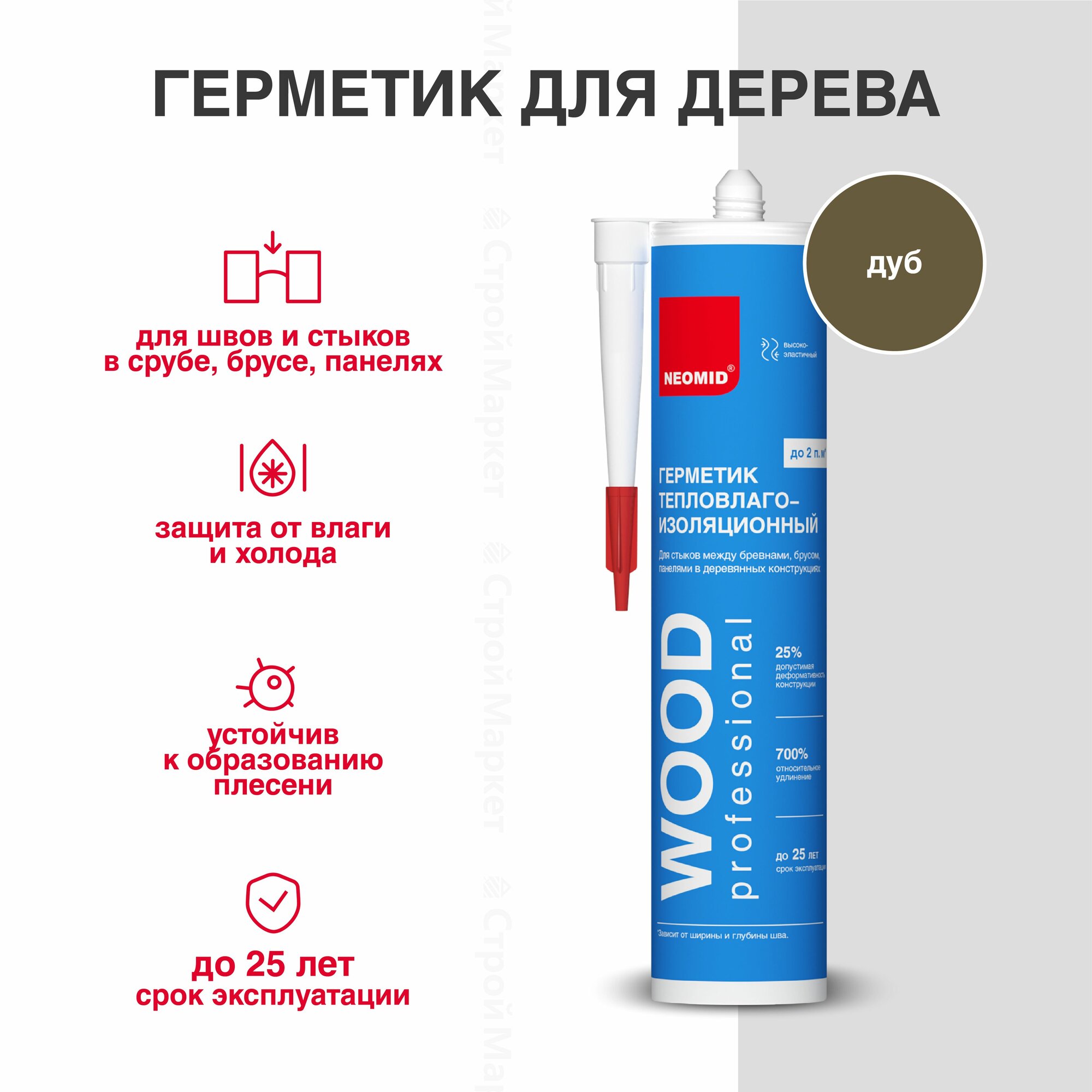 Герметик Межшовный для Сруба Neomid Wood Professional 310мл Дуб Эластичный, Окрашиваемый / Неомид Вуд.