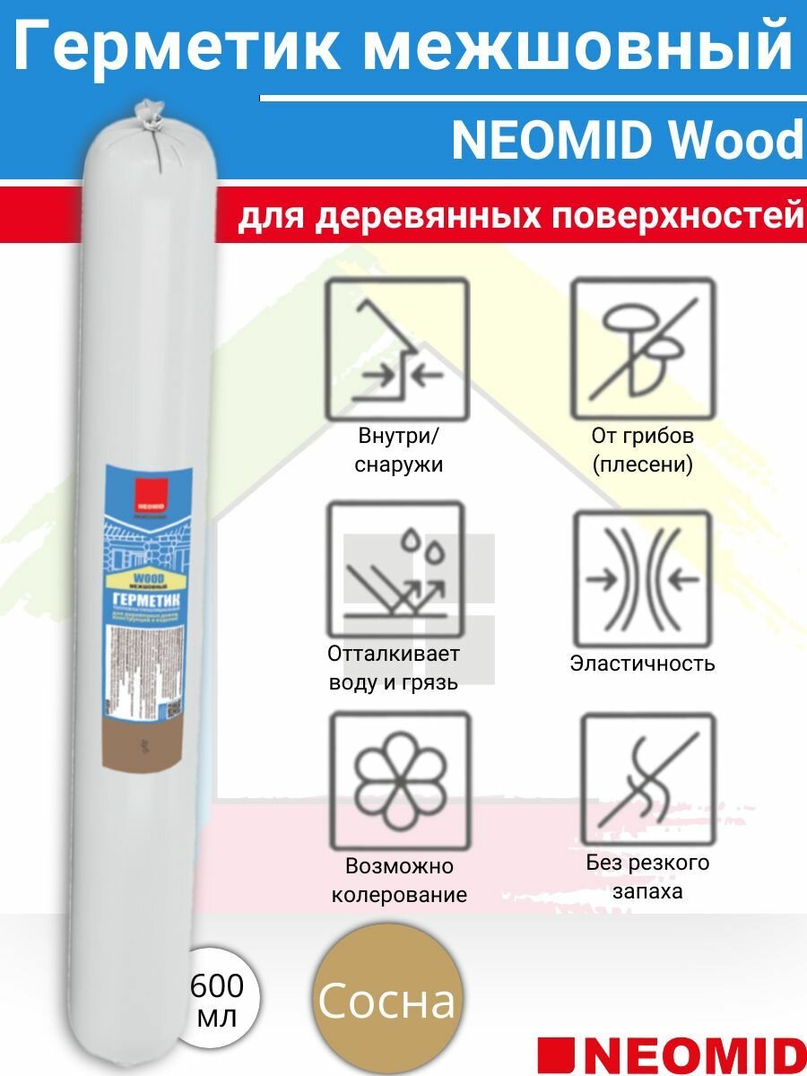 Герметик NEOMID теплый дом межшовный, для деревянных поверхностей 600 мл. Сосна