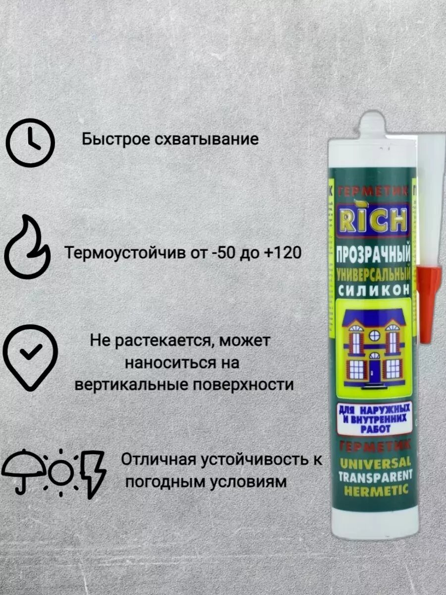 | Подробная комплектация | Герметик силиконовый RICH универсальный-5шт |