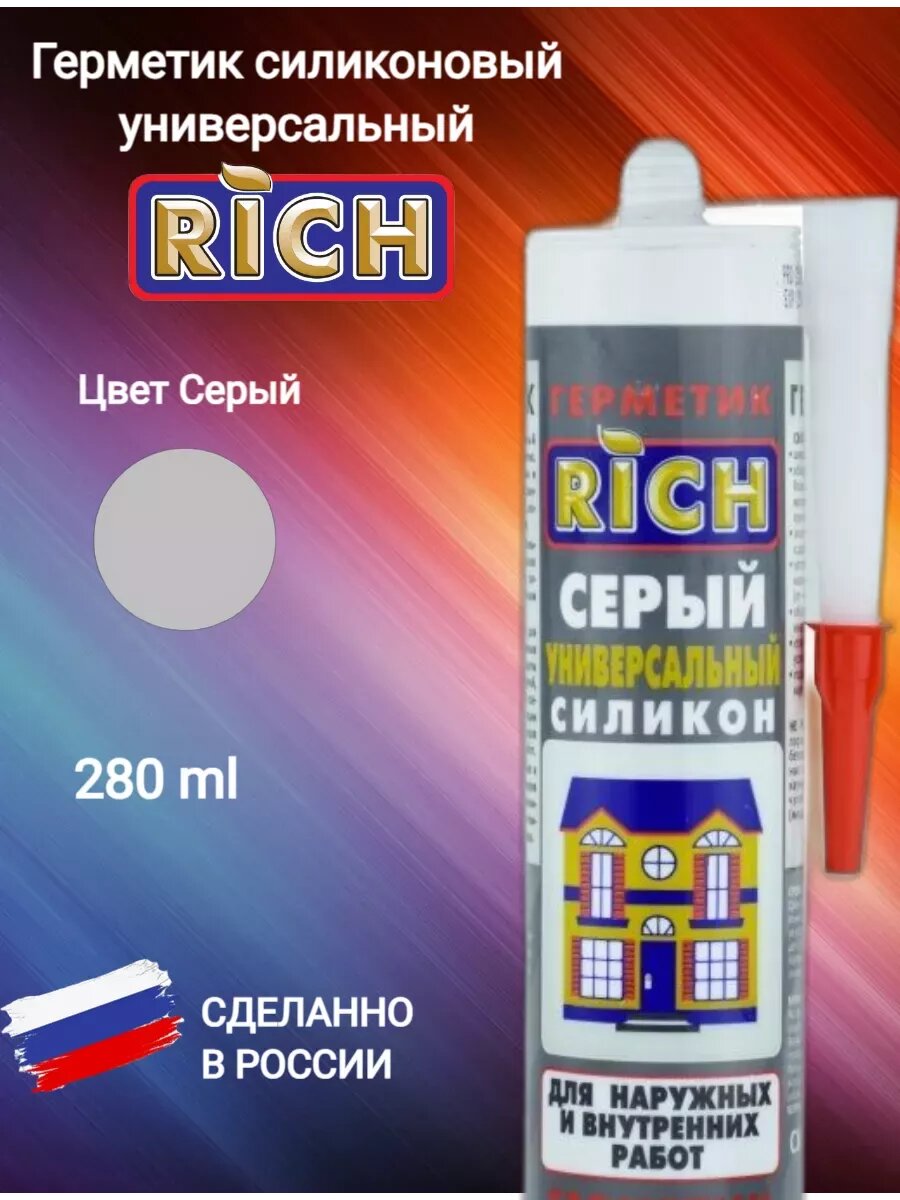 Герметик силиконовый RICH универсальный серый 280мл, 1шт