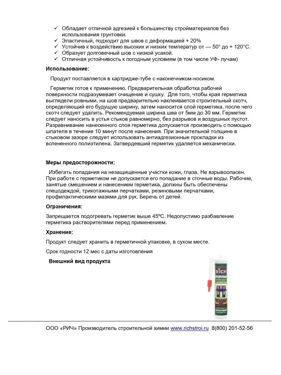 | Подробная комплектация | Герметик силиконовый RICH универсальный-5шт |
