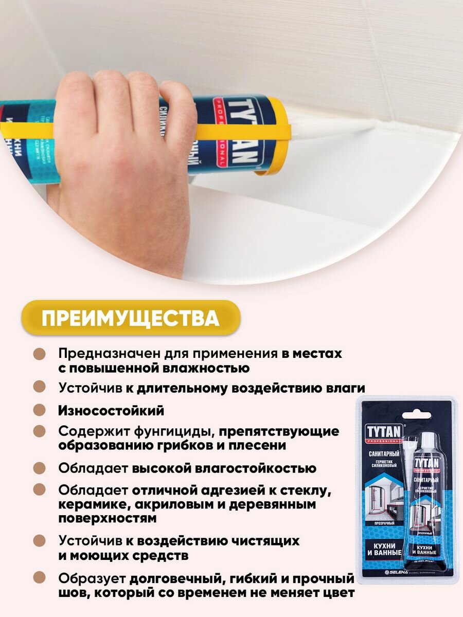 СохранитьTYTAN PROFESSIONAL Герметик Санитарный бесцветный 85мл/10шт интересное: