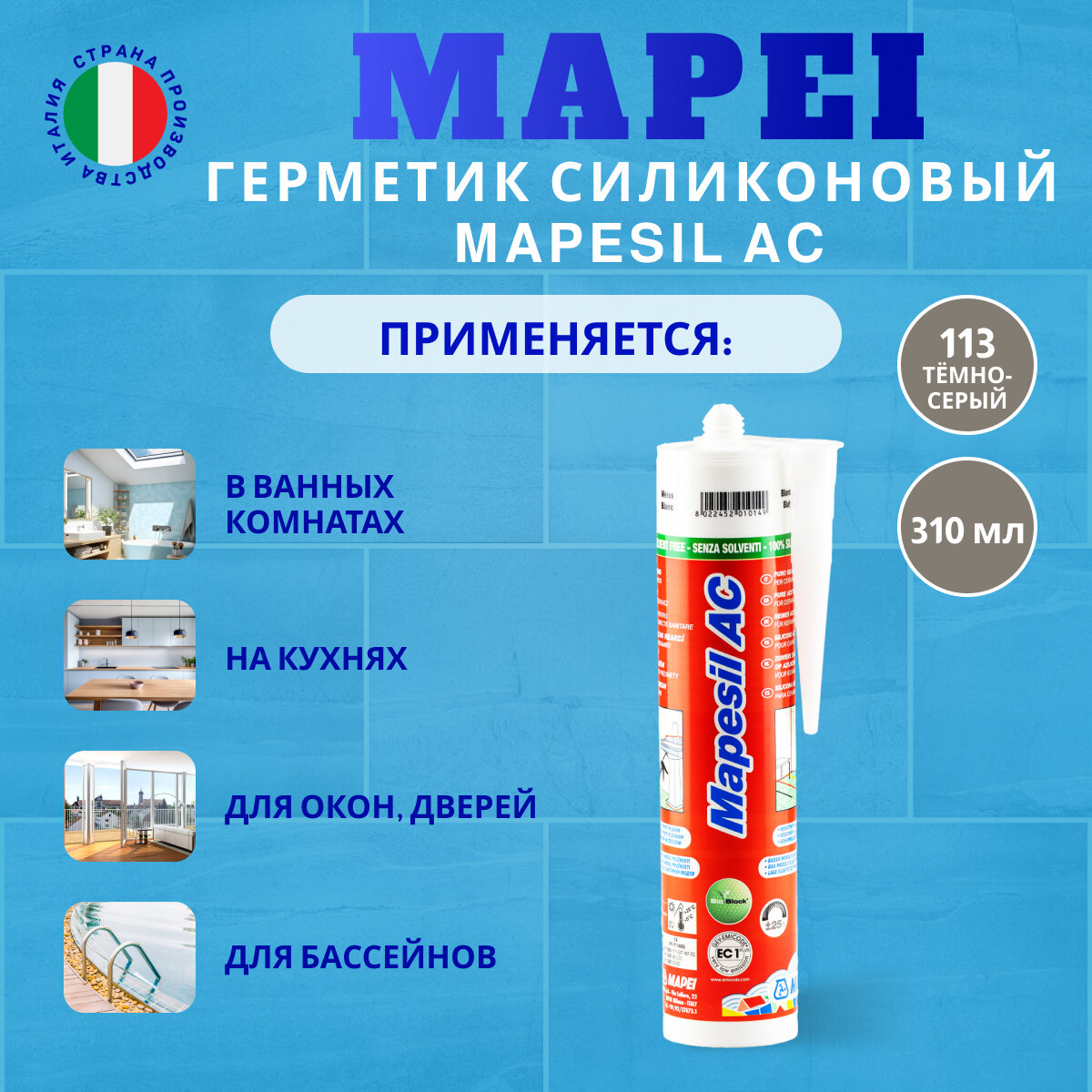 Купить Cиликоновый герметик MAPEI MAPESIL AC 113 Темно-серый, 310 мл
