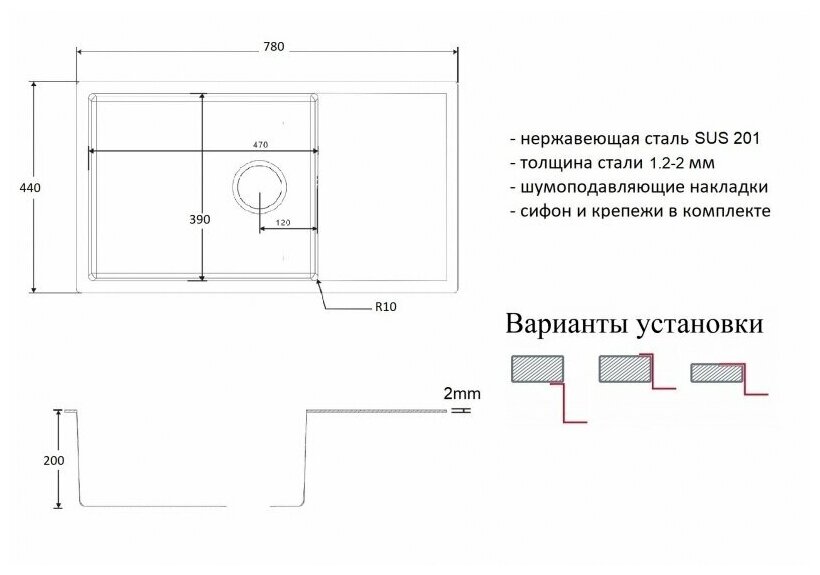 Мойка нержавеющая Zorg 780х440 мм Light ZL R 780440 GRAFIT