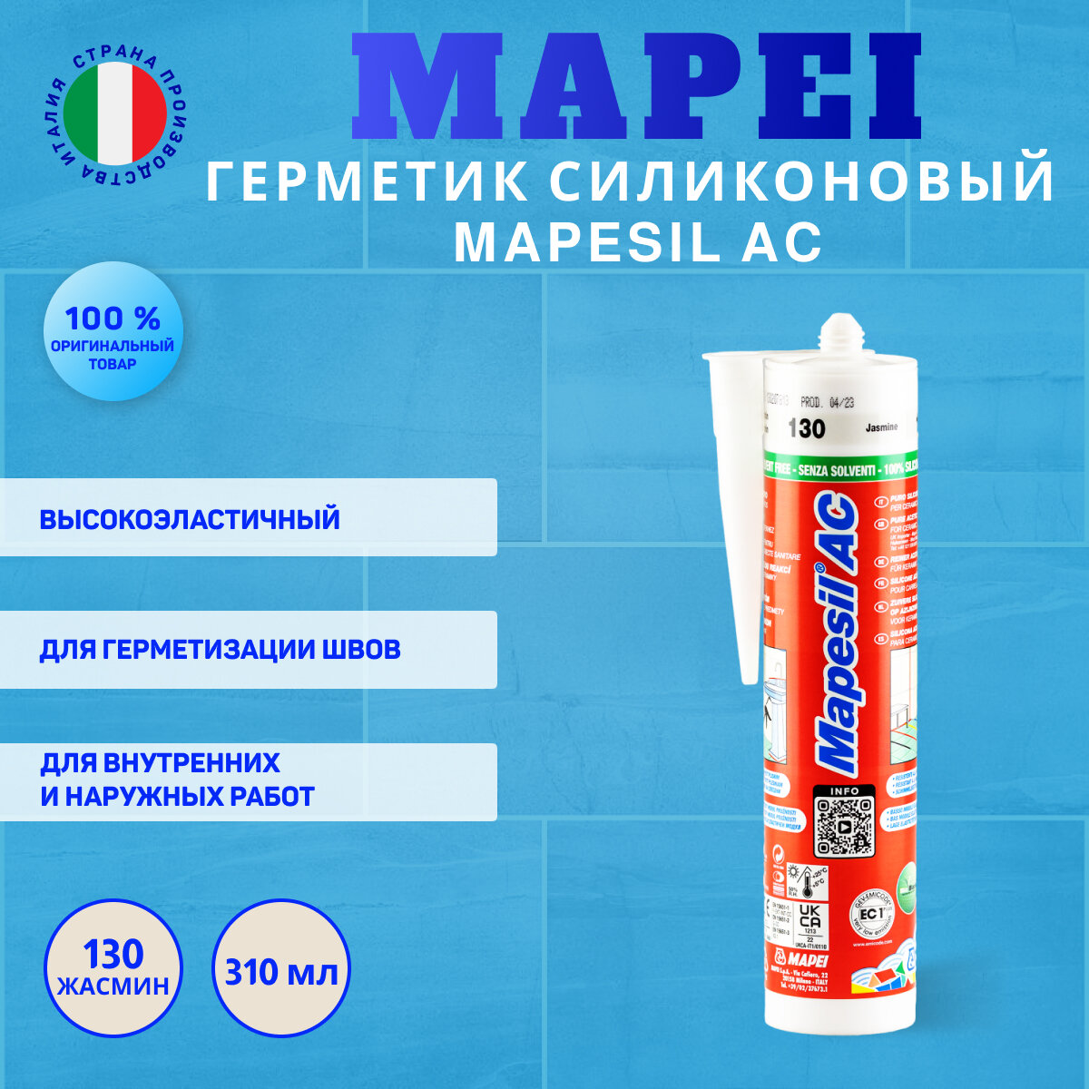 Cиликоновый герметик MAPEI MAPESIL AC 134 Шелк, 310 мл