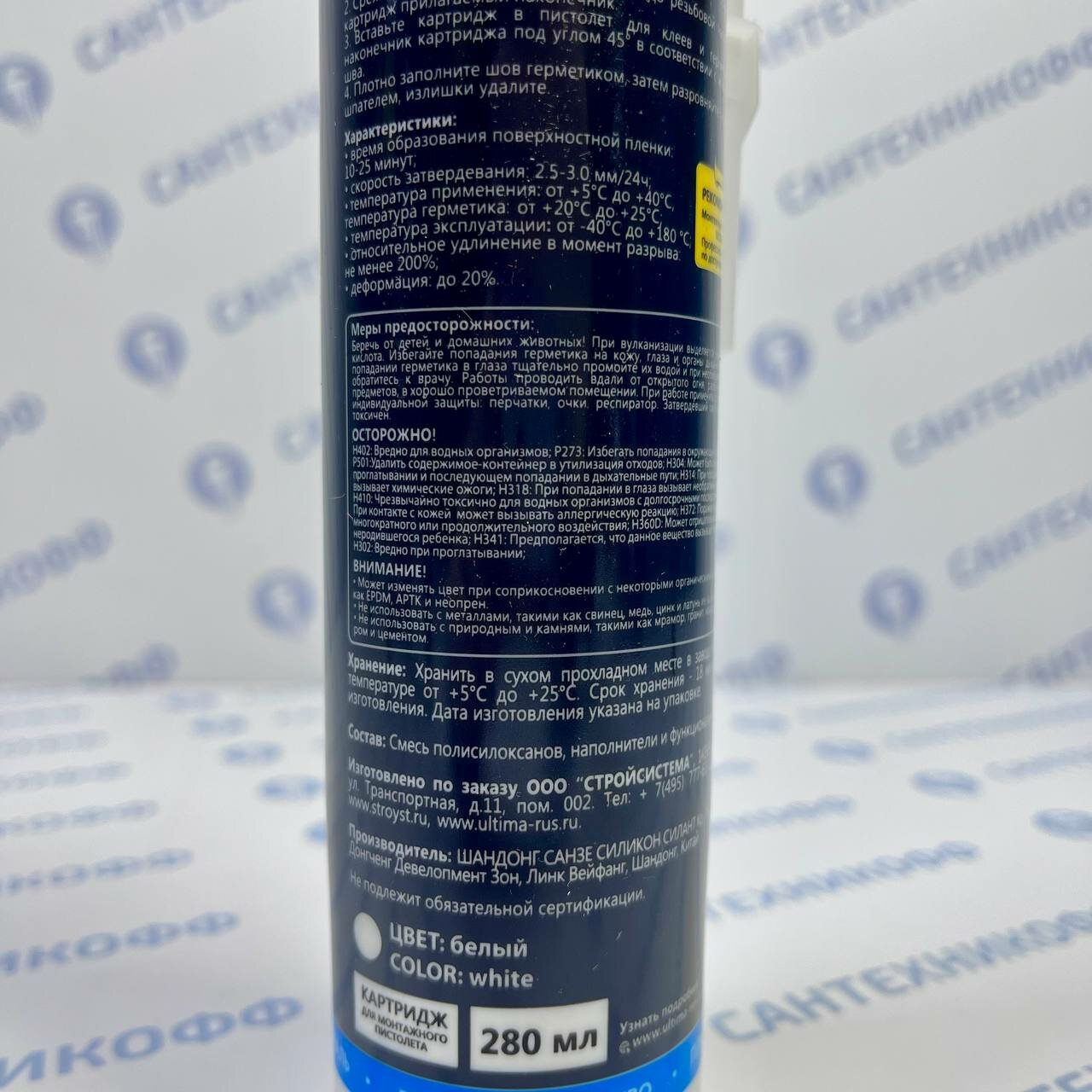 Герметик силиконовый санитарный Ultima белый, 280мл