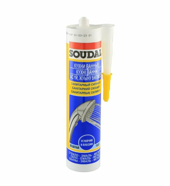 Силиконовый герметик SOUDAL Кухни Ванные санитарный 280 мл прозрачный