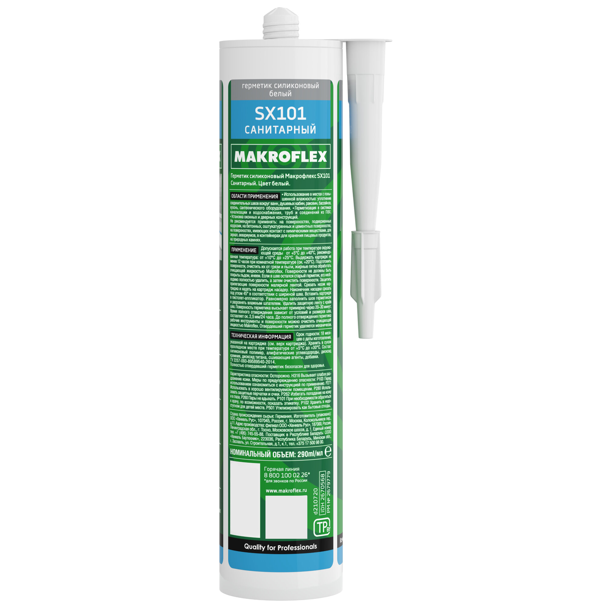 Силиконовый санитарный герметик Makroflex SX101, 290 мл, белый