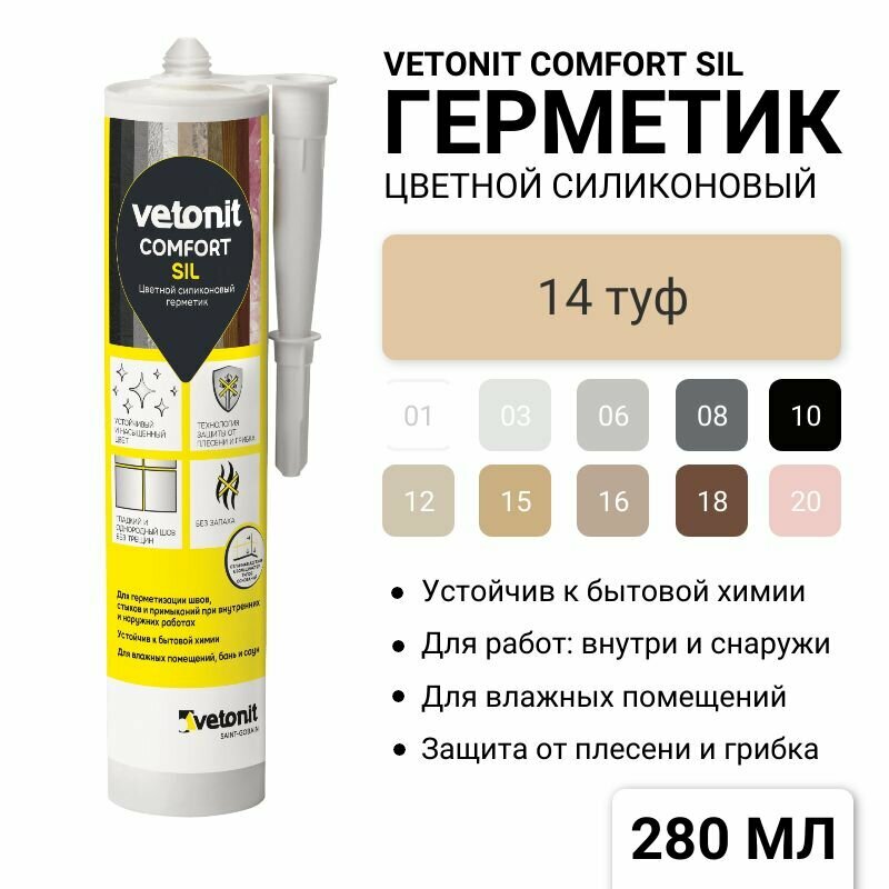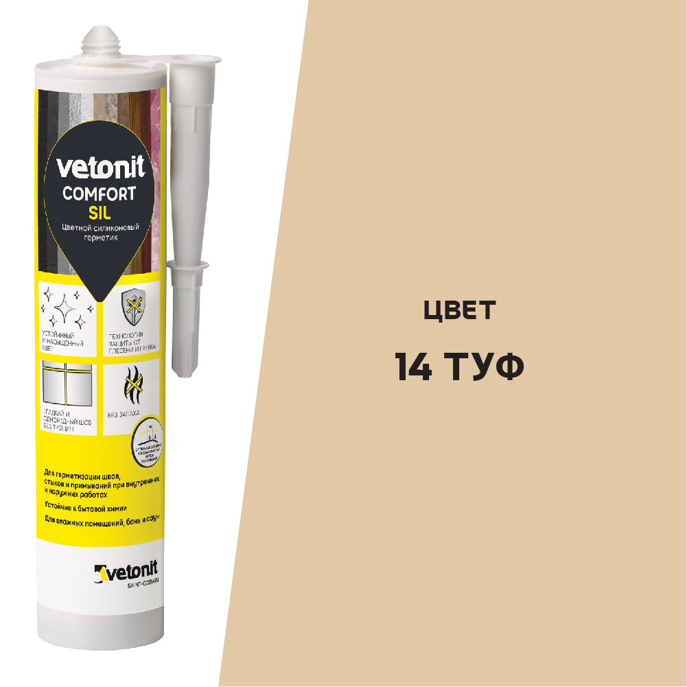 Купить Цветной силиконовый герметик Vetonit comfort sil 14 туф (бежевый), 280 мл