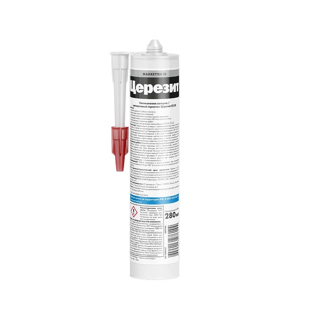 | Подробная комплектация | Герметик-затирка силиконовая противогрибковая Ceresit CS 25 41 натура 280 мл, 1 шт. |