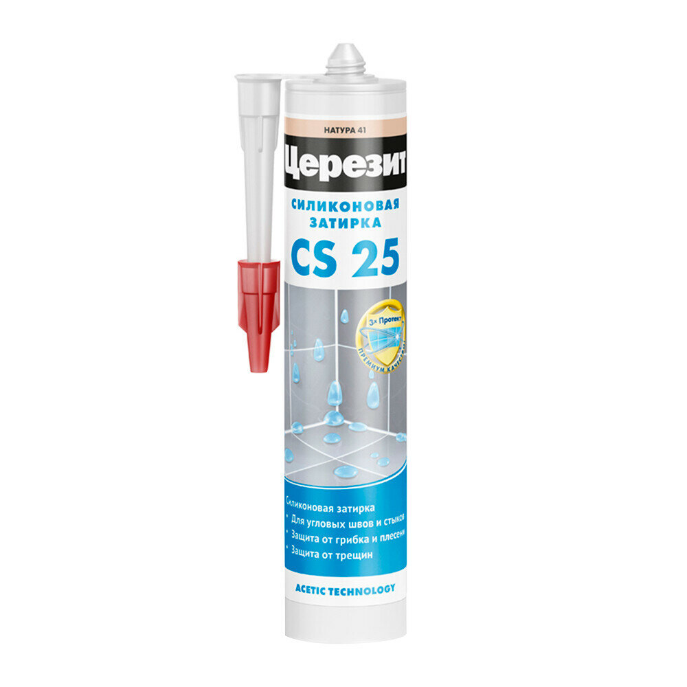 Затирка-герметик силиконовая Церезит CS 25 №41 натура 280 мл / для ванной, для кухни