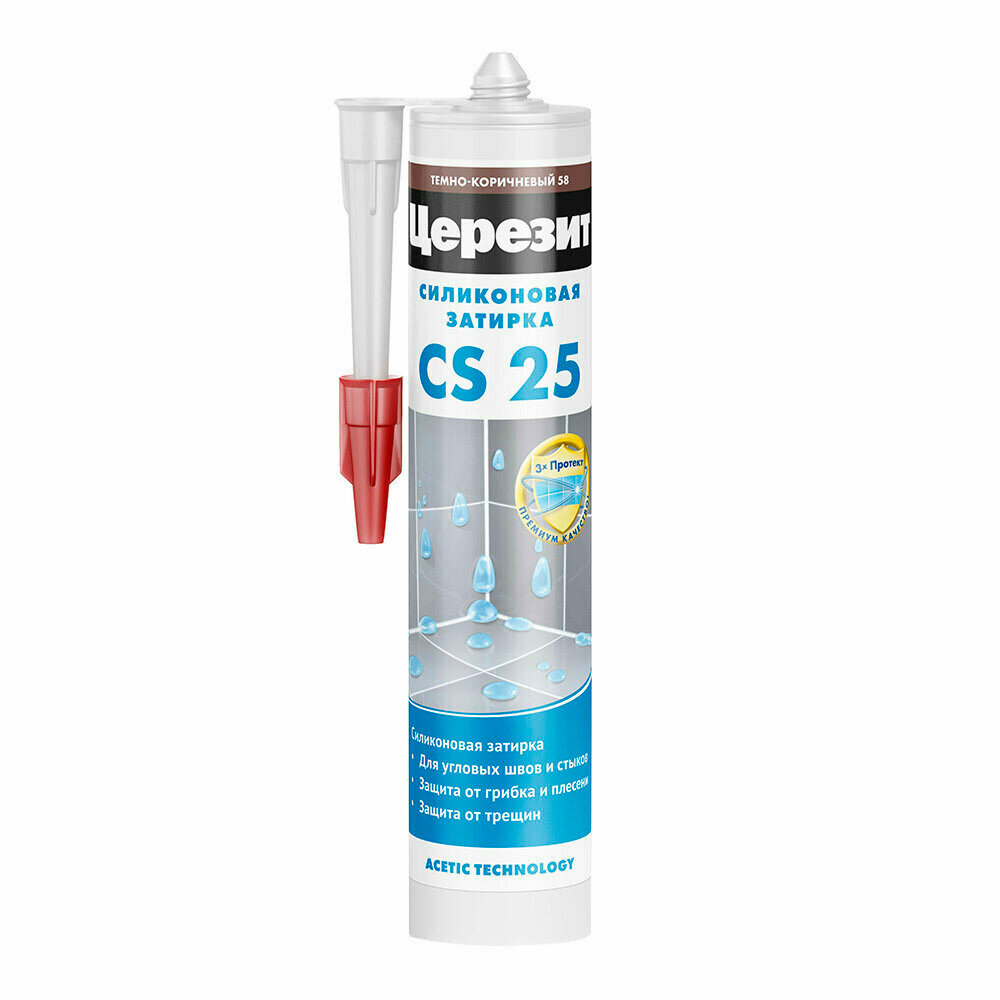 Силиконовая затирка-герметик Церезит CS 25, цвет №60 Темный шоколад, 280 мл