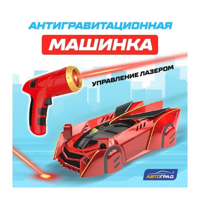 Автоград Антигравитационная машинка LASER, управление лазером, акб, ездит по стенам, красный 77698