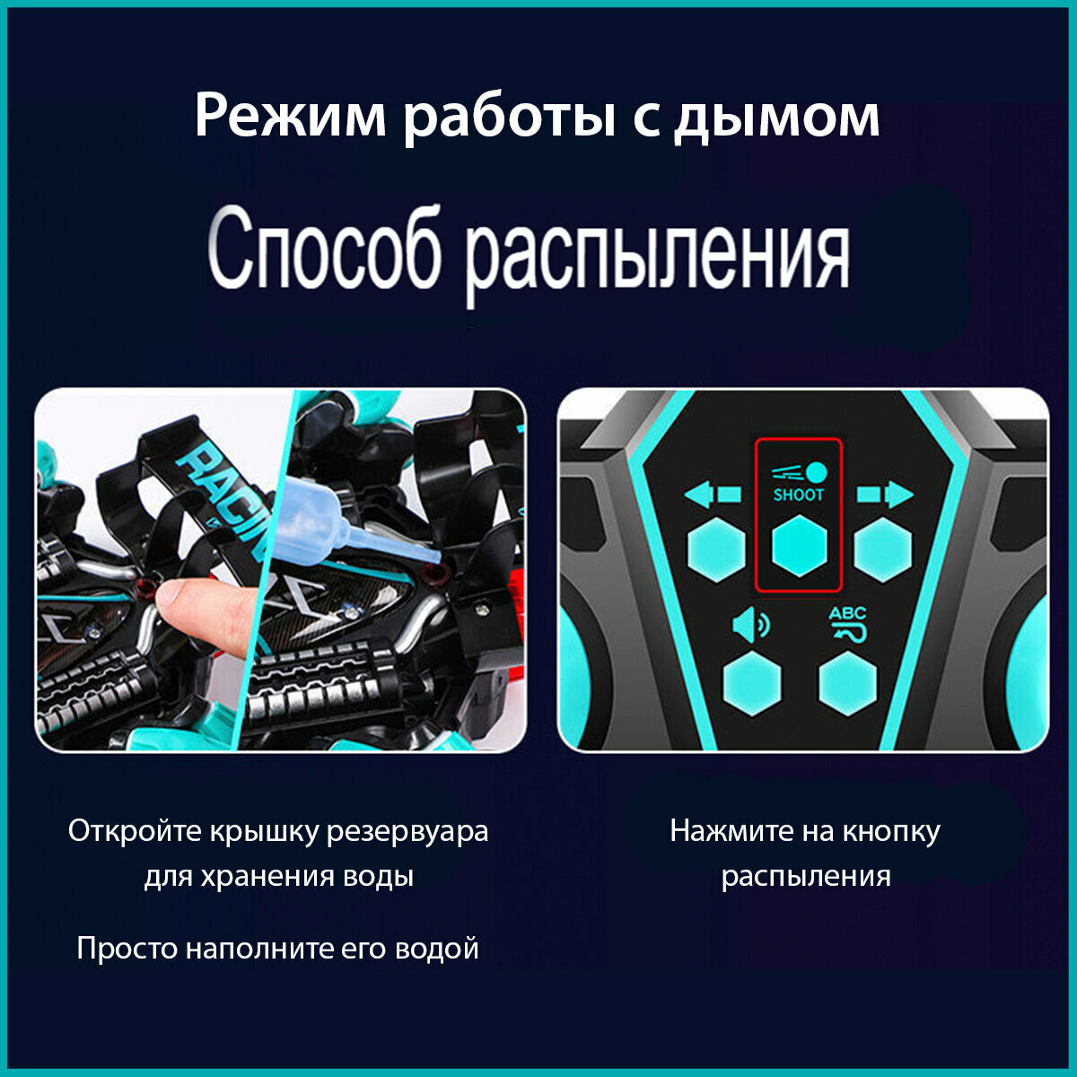 | Комплектация | машинка, пульт, пульт-браслет на руку, зарядное устройство, инструкция, пипетка для заправки водой |