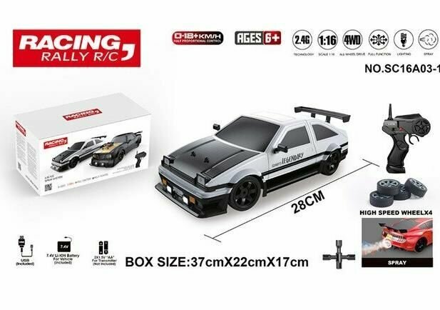 Радиоуправляемая машина для дрифта Toyota Sprinter AE86 (4WD, свет, пар, акб, 1:16) - SC16A03-1