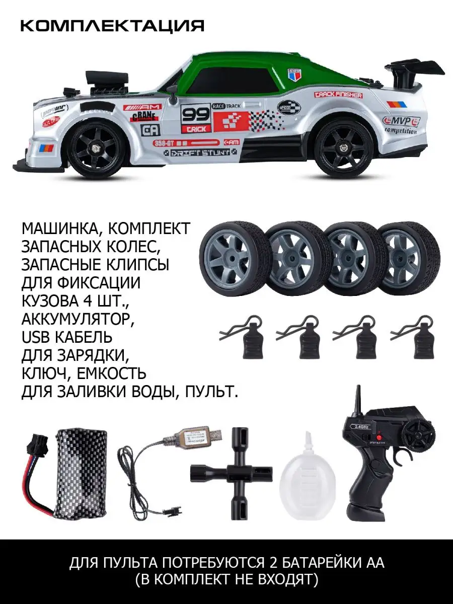 | Особенности | батарейки в комплекте / для дрифта / для улицы / пульт ДУ в комплекте / трюковая |