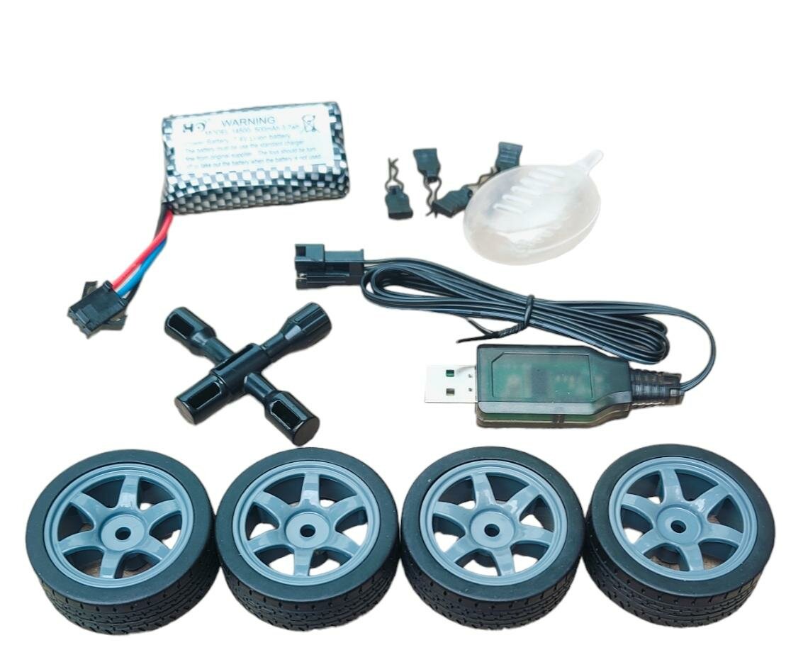 | Комплектация | В комплекте: радиоуправляемая машинка; пульт ДУ; зарядное устройство; аккумулятор Li-Ion, 500мАч, 7,4В; ключ; емкость для заправки воды; 4 запасных колеса; инструкция по эксплуатации. Комплект требует: 2 батарейки типа АА для пульта управления |