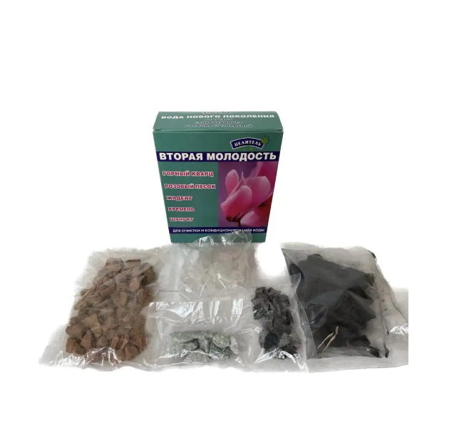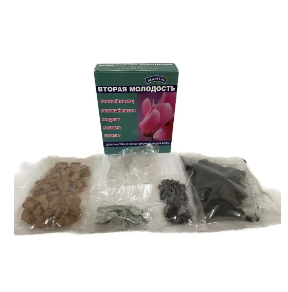 Купить Минерализатор воды Вторая молодость 380 гр., Сила 5 минералов: Кремень, Розовый песок, Жадеит, Кварц, Шунгит, Природный целитель, натуральные камни для очистки воды