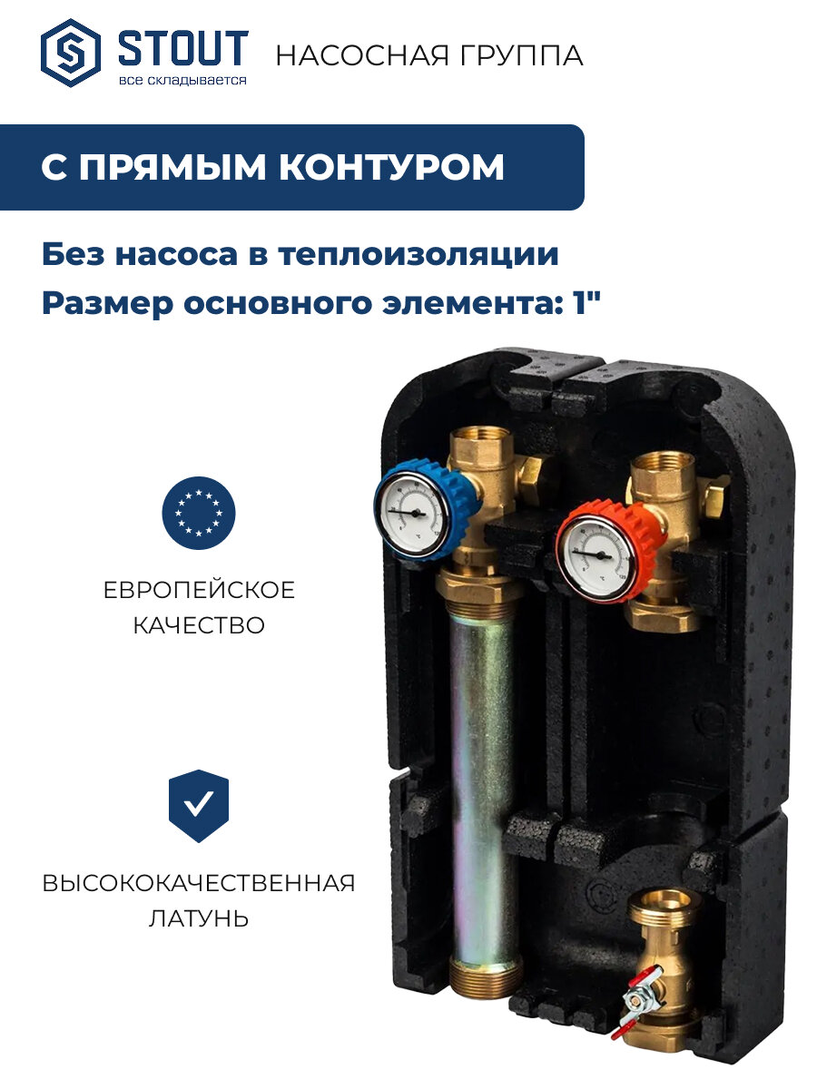 Насосная группа с прямым контуром (1", без насоса в теплоизоляции, DN 25) STOUT SDG-0001-002501 интересное: