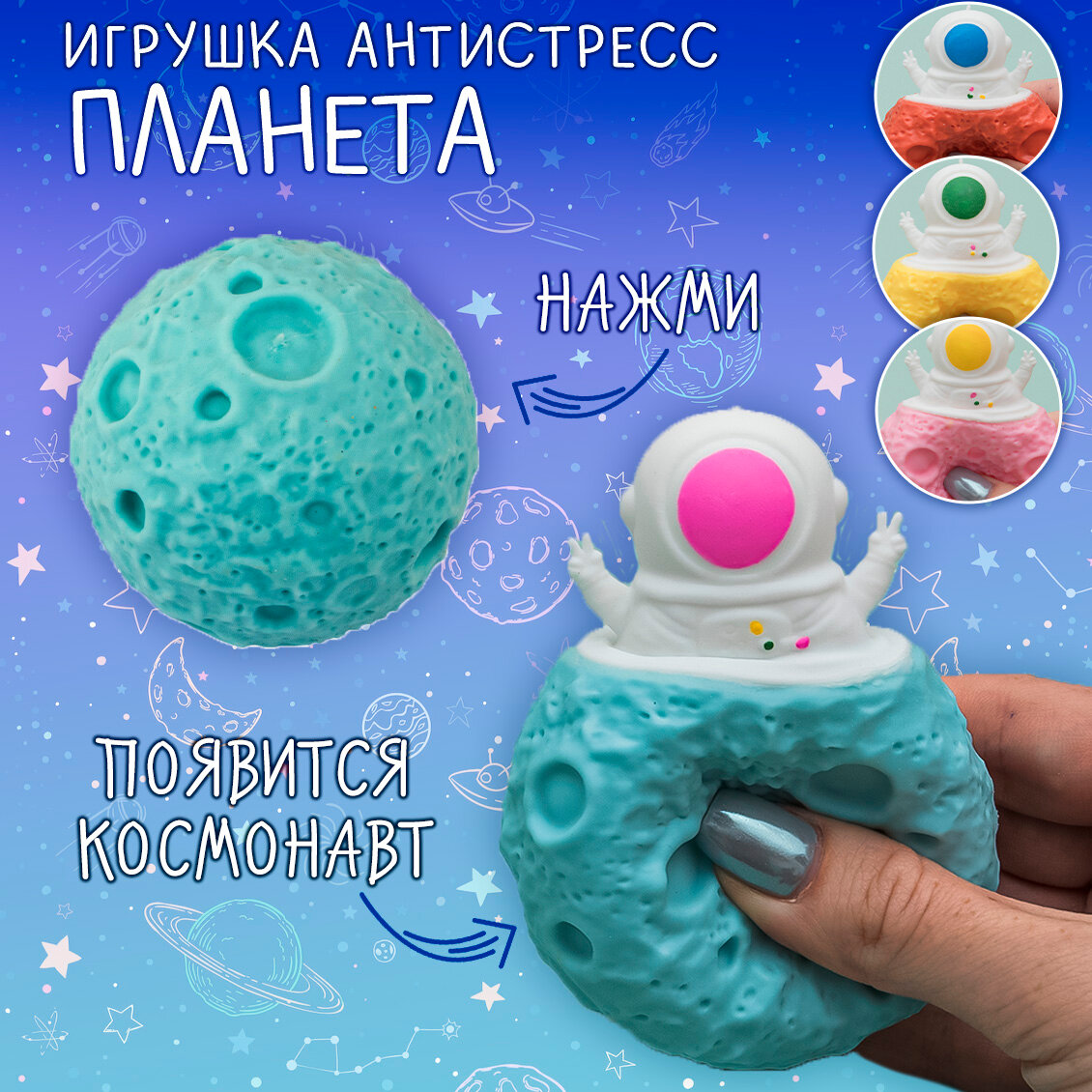 Купить Игрушка антистресс мялка Фуфлик Космонавт Планета синяя с космонавтом, сквиш Эврика подарок девочке, мальчику подарок 23 февраля, 8 марта Космос 12 апреля День космонавтики