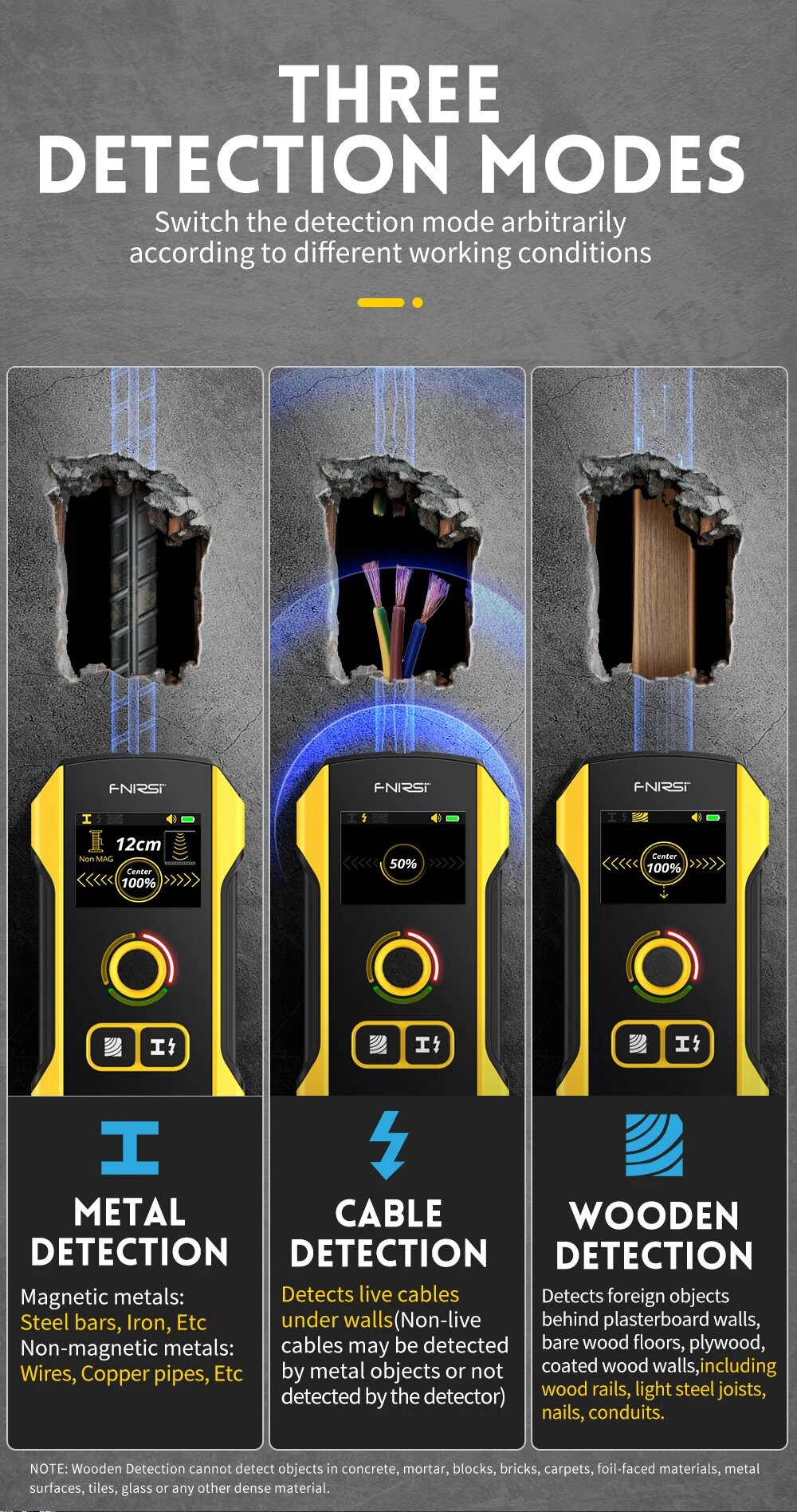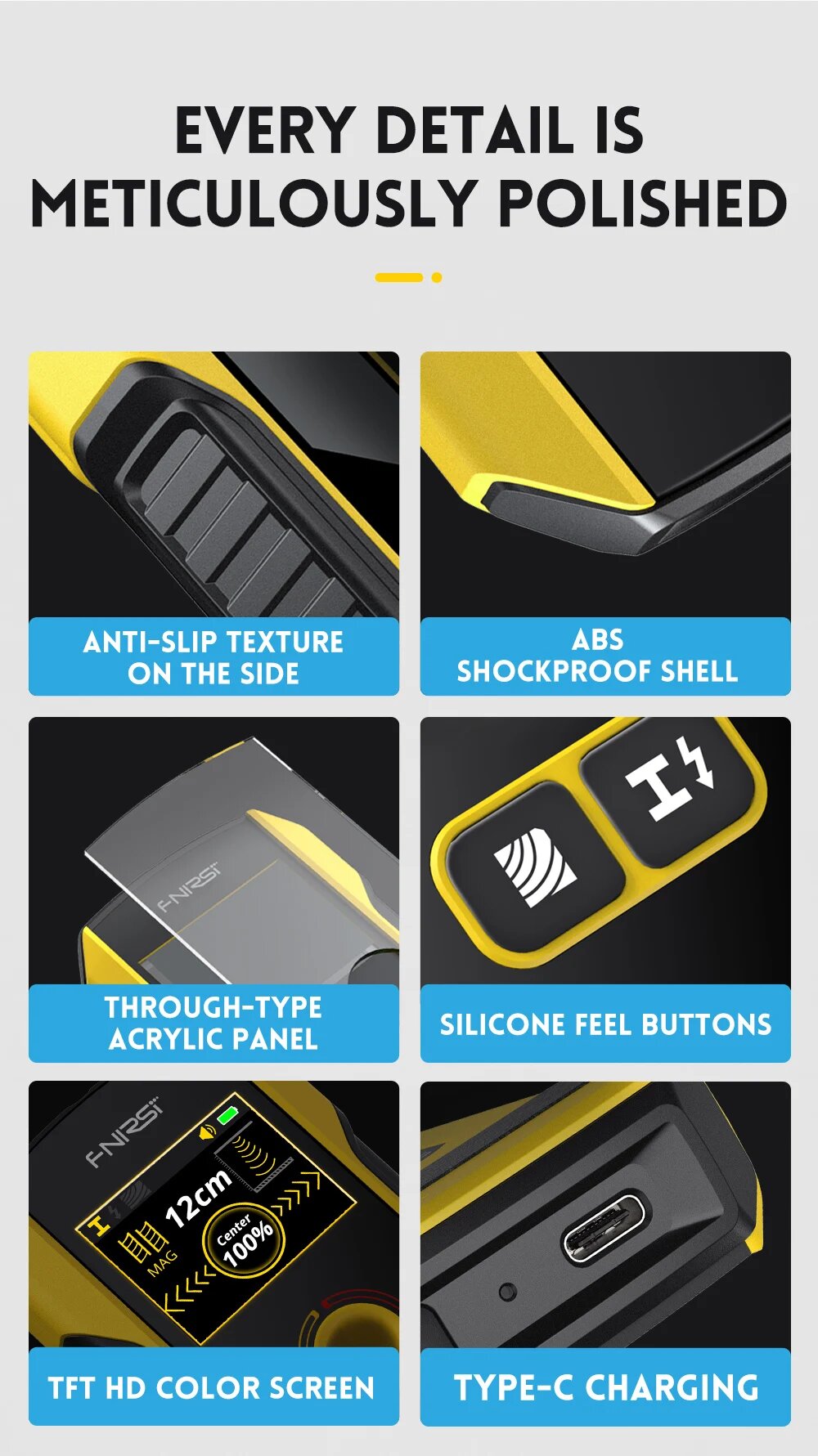 Детектор для металла FNIRSI, ручной настенный сканер с питанием от сети переменного тока, с кабелем под напряжением, для поиска металлических и деревянных гвоздиков с определением расположения отверстий в стене