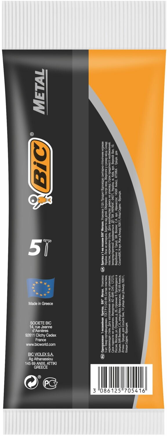 BIC Станок бритвенный Metal, с защитным металическим покрытием, с 1 лезвием, одноразовый, 5 шт. в уп, 1 уп