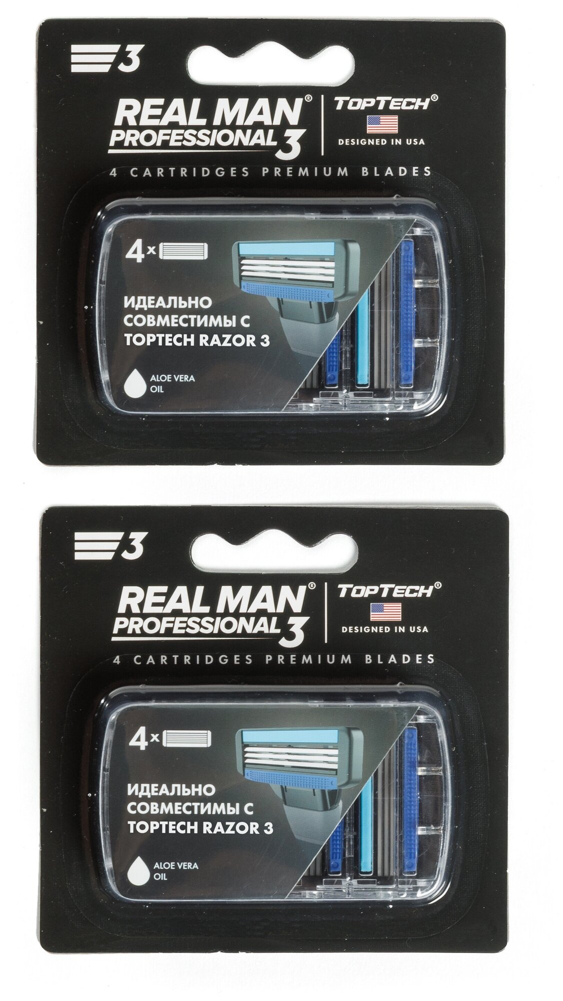Сменные кассеты для бритья TopTech Razor 3. Совместимы с Gillette Mach3. 4шт.