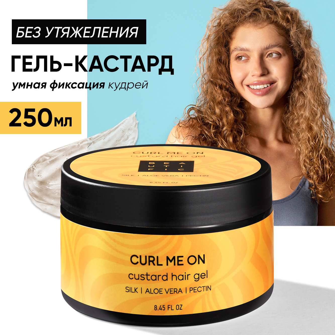 BEAUTIFIC Гель-кастард для укладки кудрявых и вьющихся волос CURL ME ON, для упругости локонов, легкая фиксация, 250 мл