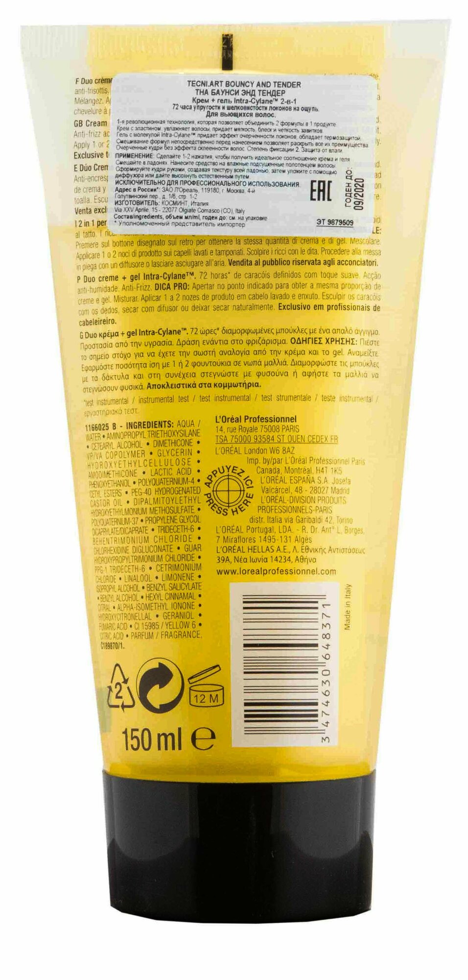L'Oreal Professionnel Крем-гель Tecni. Art Bouncy&Tender 2-в-1 для вьющихся волос, 150 мл