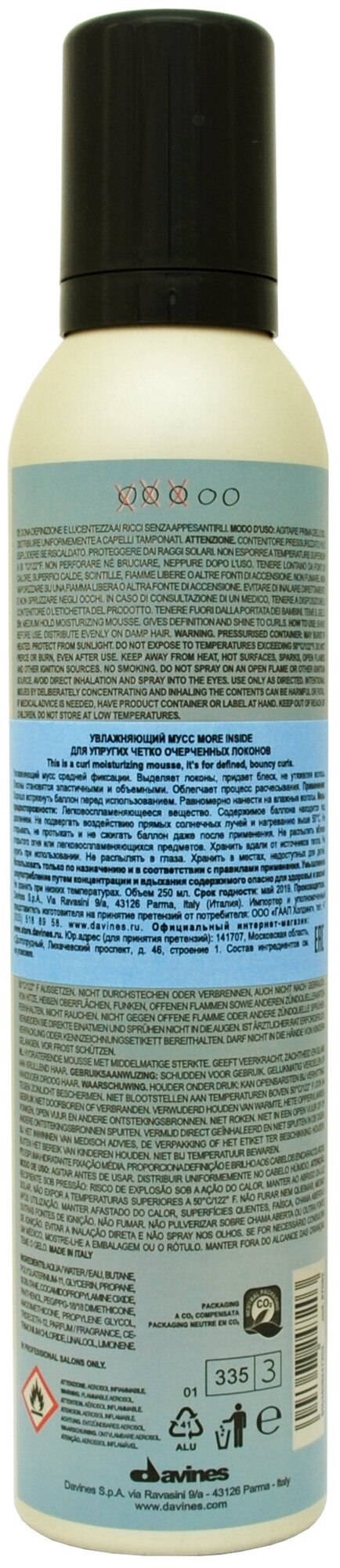 Davines More Inside Curl Moisturizing Mousse - Увлажняющий мусс для упругих четко очерченных локонов, 250 мл интересное: