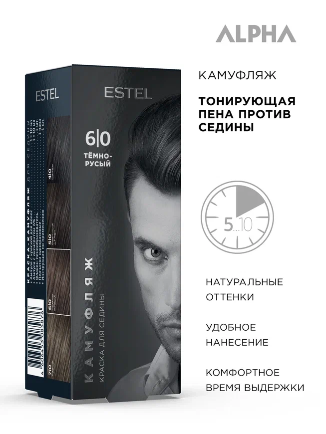 ESTEL / Alpha Homme – Тонирующая пена против седины Камуфляж тон 6/0 «Темно-русый», 10 мл, (арт.: A6/K)