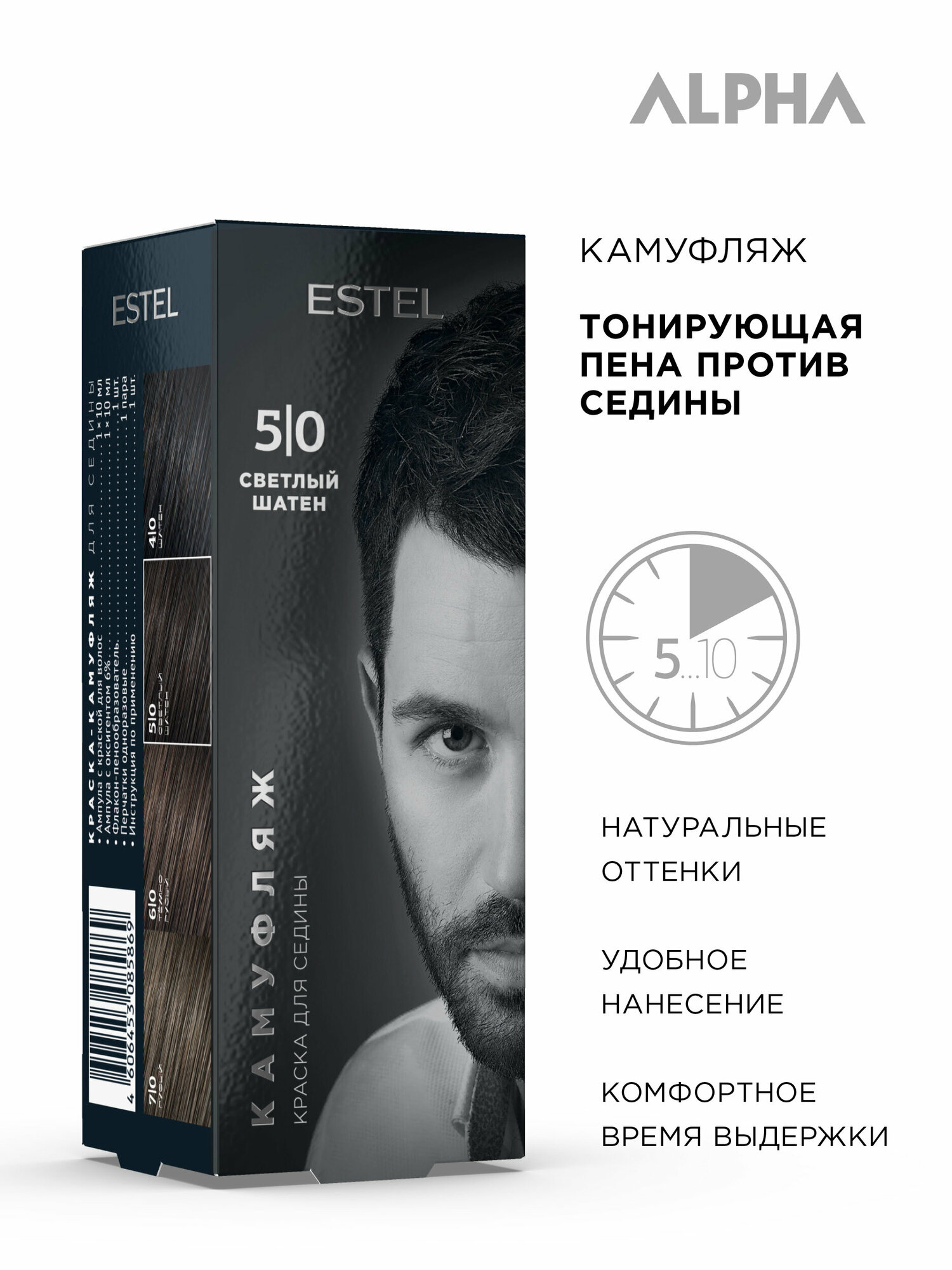 ESTEL Alpha Homme тонирующая пена против седины Камуфляж, 5/0 светлый шатен, 10 мл