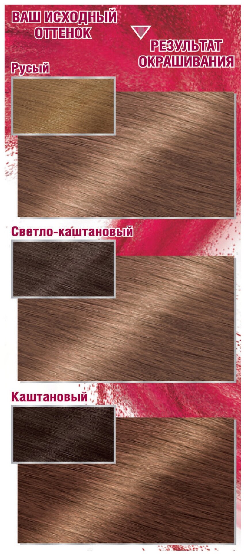| Способ применения | мешайте крем-краску и молочко-проявитель. Нанесите на волосы. Подождите рекомендованное на упаковке время и смойте. Нанесите бальзам. Смойте. Для усиления защиты цвета от вымывания используйте шампунь для окрашенных волос |
