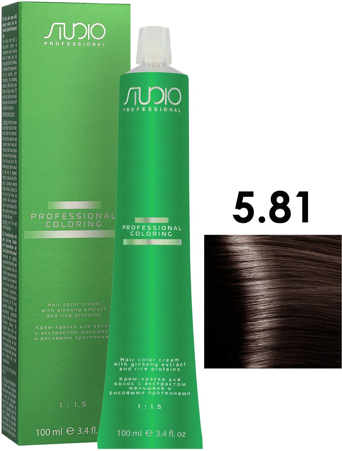 Kapous Studio Professional Крем-краска для волос Studio, тон №5.81, Светлый коричнево-пепельный, с рисовыми протеинами и экстрактом женьшеня, 100 мл